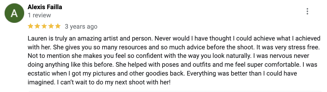 You can also email me directly at: lauren@laroseportraits.com or give me a call at: 949-560-5019
